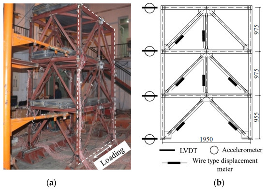 Shake-table test of concentrically braced frame (unit: mm). (a) Test setup; (b) Elevation.