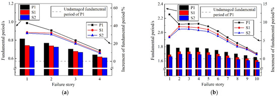 Fundamental period of residual structure. (a) 4-story. (b) 10-story.