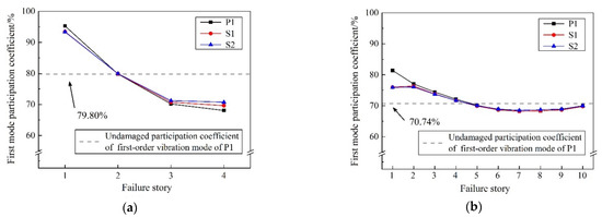 First-mode participation coefficient of residual structure. (a) 4-story; (b) 10-story.