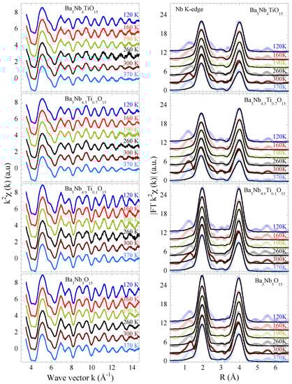 Figure 2 (right), the two main peaks between R ∼ 1.5–4.5 Å takes into account the contributions of the Nb-O bondlenghts (the first peak) and Nb-Ba distances as well as the Nb-Nb (∼