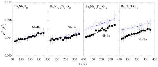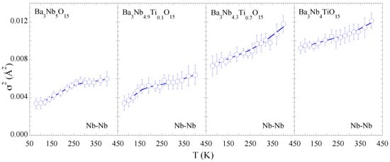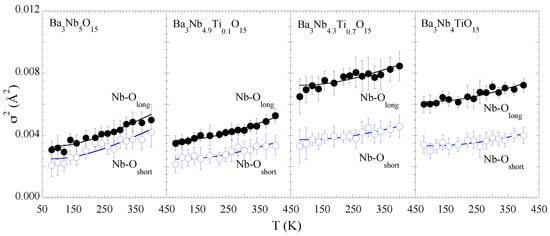 Figure 3 shows the Nb-O distances as a function of temperature for different Ti substitutions. Apparently, there is a marginal effect of temperature on the local structure of the Nb