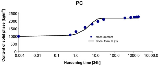 The graph of the approximating Function (11) with the measurement points of the content of solid phase as a function of hardening time is presented in Figure 4.