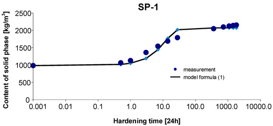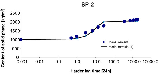 The graph of the approximating Function (15) with the measurement points of the content of solid phase as a function of hardening time is presented in Figure 8.