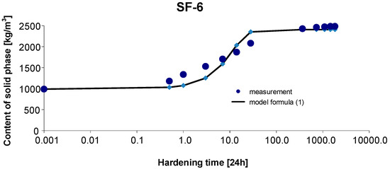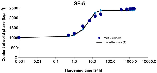 The graph of the approximating Function (14) with the measurement points of the content of solid phase as a function of hardening time is presented in Figure 7.
