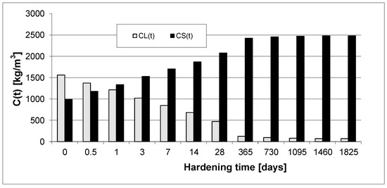 The quantity CL,0 represents a viscous liquid at the beginning of the phase transformation process. The quantity Cs,0 stands for the content of the solid phase at the beginning of the phase transformation process. It was assumed for the analysis that the solid phase at the beginning of the process was only made up by coarse aggregate.