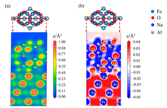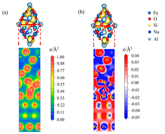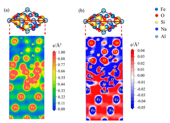 The (a) charge density and (b) charge density difference of the Fe−amorphous Na2SiO3−Al2O3 interface at (111) crystal plane.