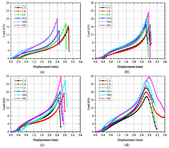 As depicted in Figure 4, the load–displacement curves of concrete and mortar were obtained under different loading rates.