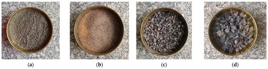 (a) Commercial cement; (b) river sand; (c) natural coarse aggregates (NCA)—10 mm; (d) natural coarse aggregates (NCA)—20 mm.