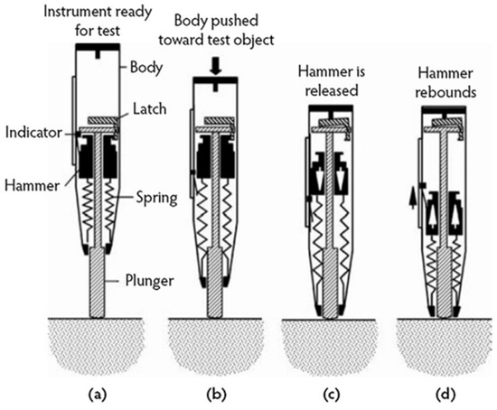 The rebound hammer test is non-destructive testing that can measure the strength of finished concrete structures. The rebound hammer equipment is easy to carry, and the test procedure is simple. The rebound hammer can only estimate the compressive strength on the surface of concrete, and it is not very accurate in predicting the actual compressive strength of concrete. The rebound hammer test is also used to correlate the compression strength for UPV measurements (Figure 3).
