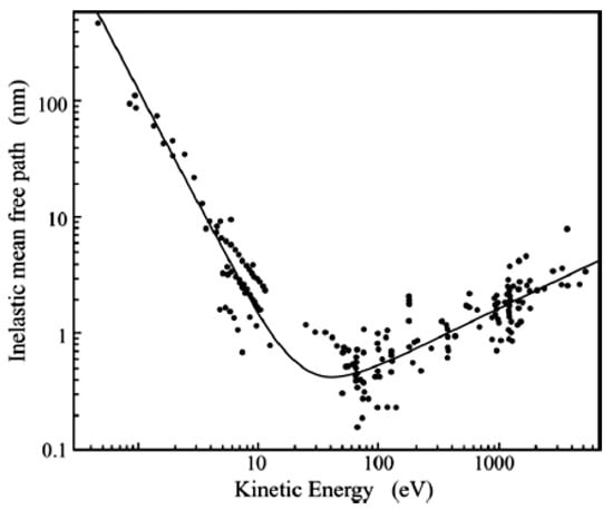- Powell, C.J.; Jackson, A. NIST Electron Inelastic-Mean-Free-Path Database; Version 11; NIST: Gaithersburg, MD, USA, 2000. [Google Scholar]