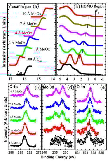 - Hill, J.P. Ultraviolet Photoelectron Spectroscopy. In Characterization of Materials; Kaufmann, E.N., Ed.; John Wiley & Sons, Inc.: Hoboken, NJ, USA, 2003. [Google Scholar]