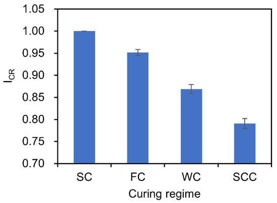 (5) The concrete under standard curing has the maximum I C R , and the I C R of different curing regimes follows: SC (1.0) > FC (0.952) > WC (0.869) > SCC (0.791).