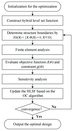 - Allaire, G.; Jouve, F.; Toader, A. Structural optimization using sensitivity analysis and a level-set method. J. Comput. Phys. 2004, 194, 363–393. [Google Scholar] [CrossRef] [Green Version]