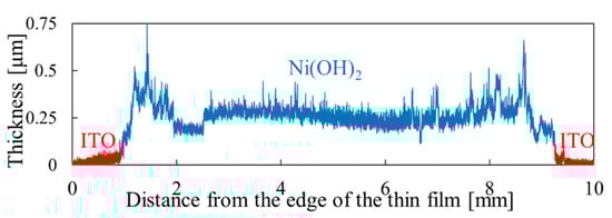 Thickness profile measurement results for the Ni(OH)2 thin film. (Ni(NO3)2 10 mM, NaOH 15 mM, two deposition cycles).