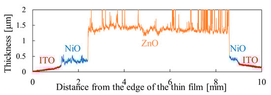 Thickness profile measurement results for the ZnO/NiO heterojunction.