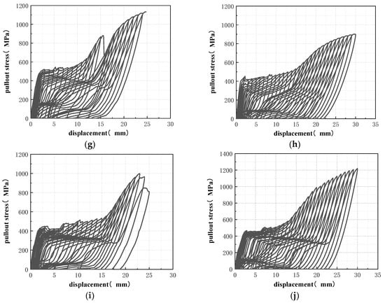 - The knotted end can provide sufficient anchoring force for SMA fibers. The maximum pullout stress of SMA fibers in the ECC matrix can reach 1100 MPa, and the maximum pullout displacement can reach 30 mm. Therefore, the superelasticity of SMA fibers can be effectively stimulated.