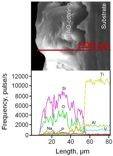 In the inner layer of the MAO coating, there is much less silicon and much more titanium (Figure 4).