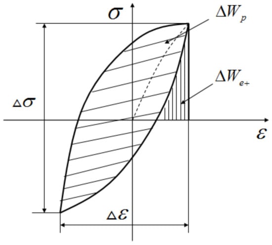 The stress–strain response encloses a completely closed hysteresis line, and its plastic strain energy density is expressed as [27,28,29,30,31,32,33,34,35]: