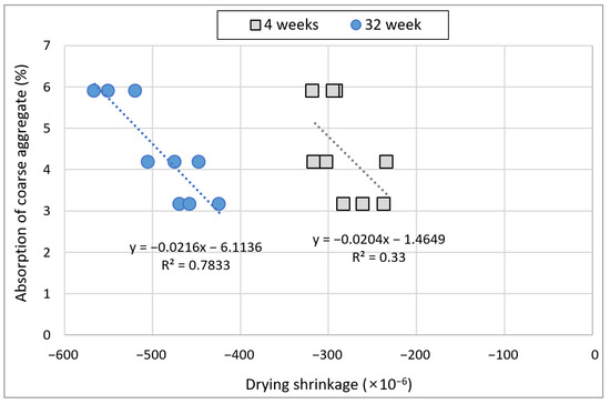 Relationship between drying shrinkage and absorption of coarse aggregate.