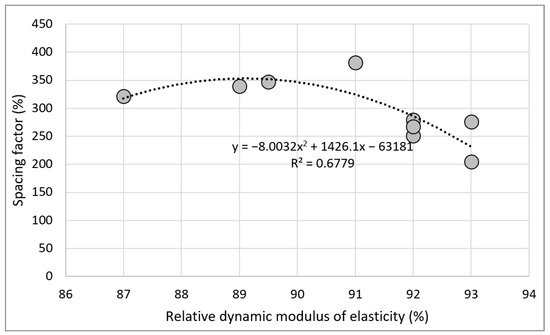 Spacing factor and relative dynamic modulus of elasticity of concrete.