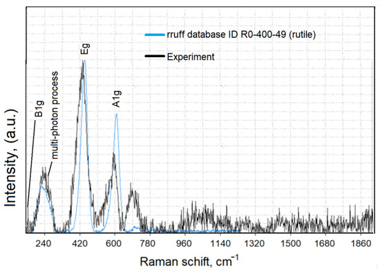 The Raman spectra of rutile TiO2 powder are presented in Figure 4.