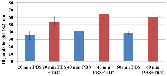 The dependence of the 10-point height (Sz) surface roughness factor on the exposure time of CHO cells to TiO2-NPs.