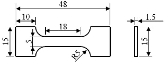 The tensile experiments were carried out under the electronic universal testing machine AG-X Plus. The tensile samples were taken from the core of the compression samples in the compression direction and perpendicular to the compression direction respectively. The shape of the tensile sample is shown in Figure 4. Tensile tests were conducted three times for each condition.