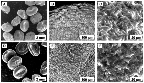 SEM images of SPRBA 5% synthesized biosorbent before (A–C) and after biosorption (D–F) of ethacridine lactate from aqueous solution.
