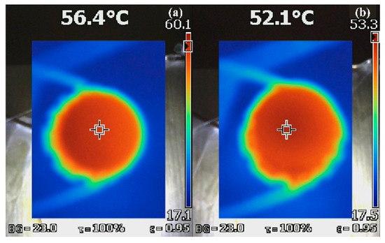 (a) Operating temperatures of hemispherical dome and (b) cylindrical-shaped PiGs under 10 W COB chips after 180 s.