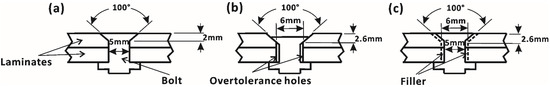 - Cheng, X.; Fan, J.; Liu, S.; Guo, X.; Xu, Y.; Zhang, T. Design and investigation of composite bolted π-joints with an unconventional configuration under bending load. Compos. Part B Eng. 2016, 85, 59–67. [Google Scholar] [CrossRef]