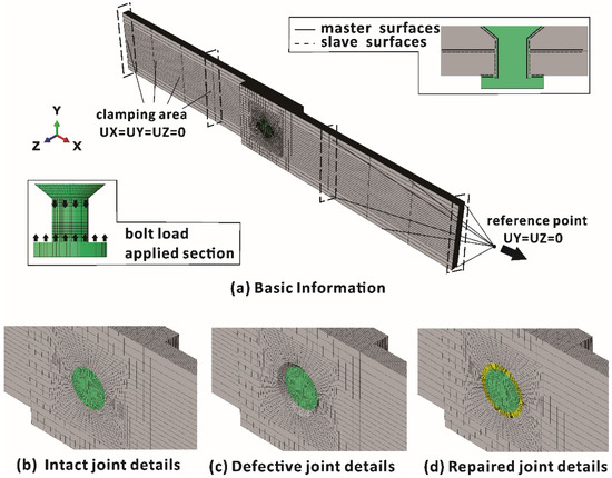 Chicago/Turabian StyleHuang, Yongjie, Zhidong Guan, Xian Yi, Zhangsong Ni, Tian Ouyang, and Zengshan Li. 2022. "Experimental and Numerical Investigation of Intact, Defective and Repaired Countersunk Composite Joints under Tensile Loading" Materials 15, no. 13: 4677. https://doi.org/10.3390/ma15134677