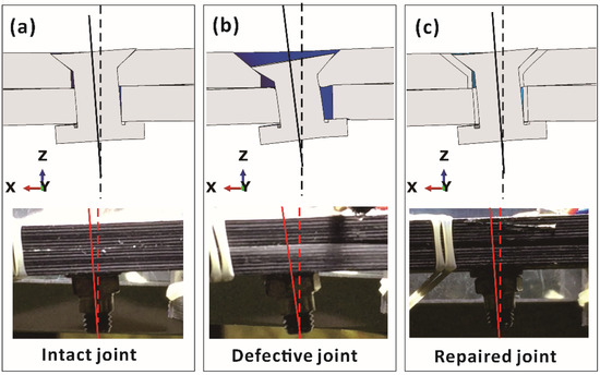 - Both the experimental and numerical results showed that the laminate failure of three types of joints mainly occurred around the hole and countersink; nevertheless, due to the effects of geometric defects and secondary bending, the failure distribution of defective joints differed slightly from the other joints.