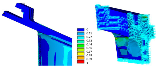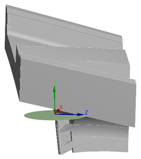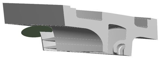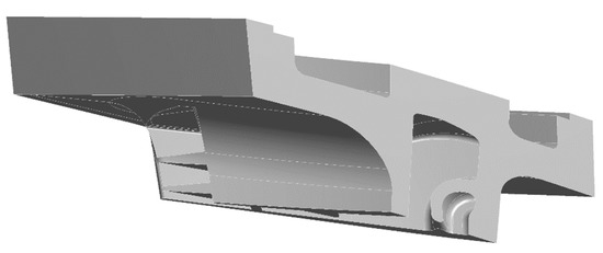 The most critical section was identified, with the preliminary analysis, at the platform exterior trailing edge (PETE). To reduce computational times and obtain more accurate results, the sub-modeling [29] technique was applied to the uncracked vane. According to this technique, the displacement field and the temperature gradient obtained from a coarse model were applied to the sub-model as boundary conditions, obtaining an accurate and highly refined response at the interested area. The remaining boundary conditions, such as mechanical loads, were applied directly to the sub-model. The steps of the sub-modeling [29] technique are listed below.