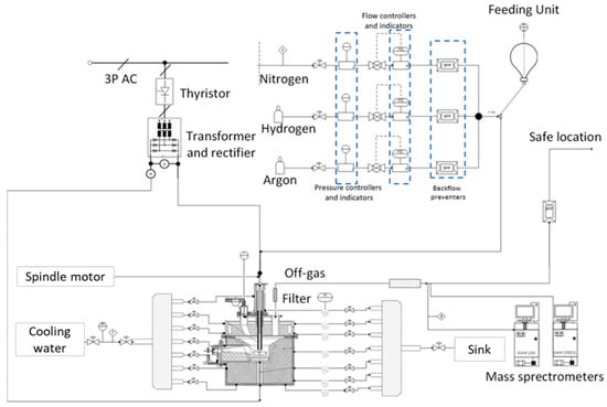 The HPSR laboratory plant at Montanuniversitaet Leoben, Austria, was used. The facilities have been described multiple times in previous works. In the most recent article about arc stability fields, all facilities were described in detail [23]. Nevertheless, the equipment and the flowsheet of the process are summarized in Table 1 and Figure 4.