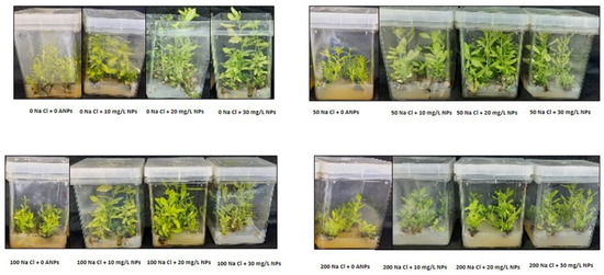 Shaikhaldein, H.O.; Al-Qurainy, F.; Nadeem, M.; Khan, S.; Tarroum, M.; Salih, A.M.; Alansi, S.; Al-Hashimi, A.; Alfagham, A.; Alkahtani, J. Assessment of the Impacts of Green Synthesized Silver Nanoparticles on Maerua oblongifolia Shoots under In Vitro Salt Stress. Materials 2022, 15, 4784. https://doi.org/10.3390/ma15144784