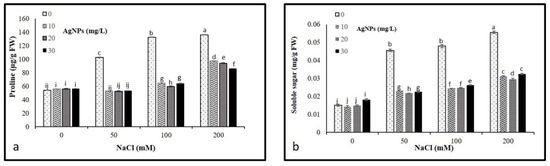- Mohamed, A.K.S.; Qayyum, M.F.; Abdel-Hadi, A.M.; Rehman, R.A.; Ali, S.; Rizwan, M. Interactive effect of salinity and silver nanoparticles on photosynthetic and biochemical parameters of wheat. Arch. Agron. Soil Sci. 2017, 63, 1736–1747. [Google Scholar]