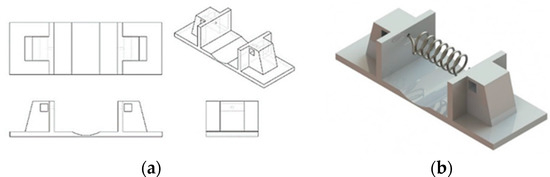 A prototype was developed using one spring (Figure 6a,b) for the thermal resistance test. In this test, a 9 V DC serial was applied at the springs to evaluate the operating temperature in contact with different materials during ten cycles. The integrity of the polymeric support of the prototype was visually evaluated, and showed no softening or damaging.