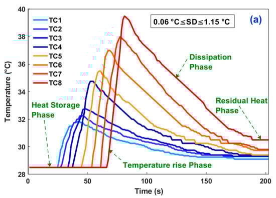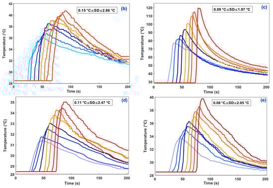 Peak temperatures measurements of each thermocouple (0.08 °C ≤ SD ≤ 2.86 °C).