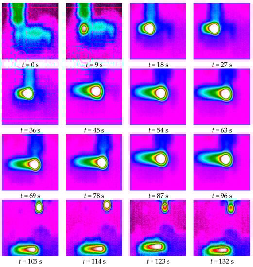 The shots with a thermal camera (EASIR TM-4 model) shown in Figure 6 reveal the heating of the tool-part assembly during and after machining for a sampling period of 9 s. We aim to deduce the evolution law of the tool temperature and to find its correlation with the sample’s laminating configurations.