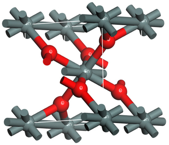 Based on the first principle of density functional theory (DFT), the simulation was carried out using the CASTEP module. Considering the non-uniformity of electron density in the real system, the exchange correlation between electrons was dealt by the PBE function of generalized gradient approximation (GGA); this way, the charge density gradient was introduced to correct the local change [21]. The interaction between valence electrons and ions was described by ultrasoft pseudopotential. Firstly, the structures of SnO2 systems were optimized by using the BFGS algorithm. Secondly, the elastic constants of the optimized cell structures were simulated and calculated after reaching the stable state. All the calculation processes were carried out in the reciprocal space. The cut-off energy of plane wave was set as 340 eV, the k-space grid point in the Brillouin zone was set to be 5 × 3 × 6. The convergence criterion was set as follows: the unit electron energy was not higher than 10−5 eV/atom, the interaction force between atoms was lower than 0.3 eV/nm, the maximum internal stress was 0.05 GPa, and the maximum displacement convergence accuracy of atoms was 10−13 m. The calculated valence electron states were Sn 5s25p2, O 2s22p4, Cr 3d54s1.