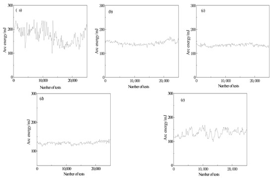 Arc energy of Sn1−xCrxO2 contact material. (a) x = 0; (b) x = 0.083; (c) x = 0.125; (d) x = 0.167; (e) x = 0.25.