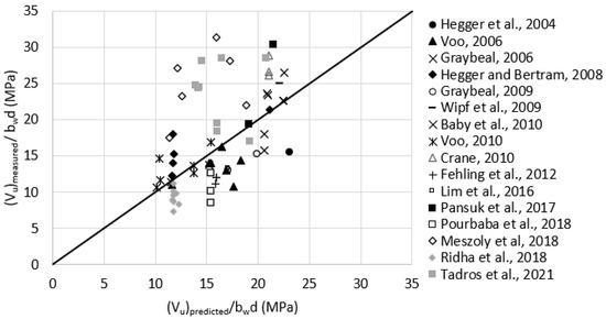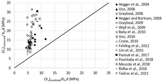 - The PCI-UHPC Structures Design Guide prediction model significantly underestimates the shear strength due to the limitation of UHPC residual tensile strength to 5.2 MPa. This value is significantly smaller than what is typically achieved by the commonly used UHPC mixes. However, the model procedure is much simpler compared to the other models.