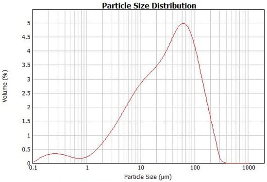 Particle size distribution related to the volume fraction of FBC FA determined using Malvern MasterSizer 2000.