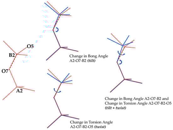 The effect of a change in As-O-B bond angle tetrahedral rotation as a ‘tilt’ compared to a change in ‘twist’ measured through a change in torsion angle tilt.