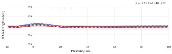 Another interesting outcome of this work is the verification that the rule proposed around two decades ago by McNelis and Blandino [60], which states that the sum of the tetrahedral bond angles can always be estimated at 657°, irrespective of chemical composition, is not just applicable at ambient pressures but also at elevated and extreme pressures such as the ones applied here. To our knowledge, this is the first time that this rule was tested at elevated and extreme pressures, and its applicability was confirmed.