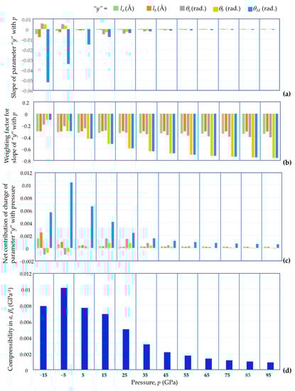 3.2. The Effect of Pressure on the Overall Size and Shape of the Unit Cell in Terms of Lattice Constants and Compressibility