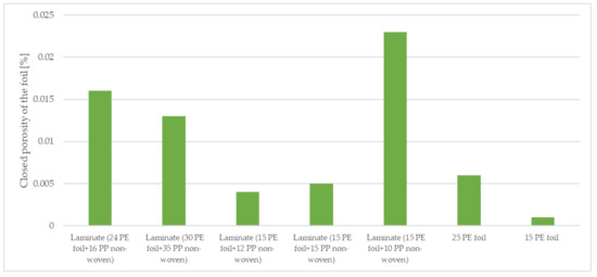 −2 PP non-woven), which is 23.71%, and the lowest total porosity of foil was observed in two-layer laminate (30 g·m