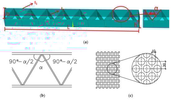 | Specimen | Cross Section (mm) | Span (mm) | Measured Size (mm) (b × h × L × t1 × t2) | α (°) | r (mm) | d (mm) | L0 (mm) | h/b |