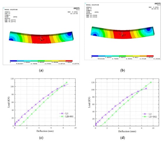 - By comparing the results obtained by ANSYS finite element modeling analysis with the test data, the credibility of the adopted modeling analysis method is confirmed, which can be used to carry out a further analysis. In the Ansys model, there is no small detachment between the steel plate and the concrete body in the mid-span position. Therefore, the plastic deformation and the overall deformation there are small before they reached the normal service limit state in the loading process, but this does not affect the use of this model for bearing capacity analysis of normal service.