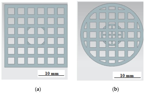 Processing was carried out in the machine tank filled with transformer oil. An Olympus GX 51 light microscope at 100× magnification was used to visually evaluate texturing results andto measure dimensions. Theoretical modeling was carried out using Siemens NX v.11, Materialize Magics v.22, and ANSYS Additive software 2019. The ETwas modeled in two types:ET with a square section and a side measuring 19 mm (Figure 3a) and a cylindrical ET with a diameter of 19 mm (Figure 3b). The end surface of both electrodes was made in the form of square cells with a cell size of 2 mm and a partition thickness of 1 mm. The height of the working surface of the ETwas 3 mm.